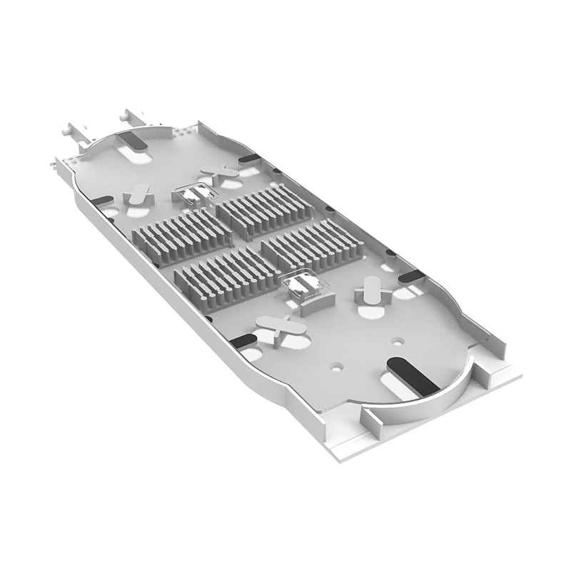 Bandeja para Caixa de Emenda Óptica (CEO.00390) – Fabricada em material termoplástico, apresenta capacidade para até 36 fibras. Seu sistema de armazenamento do excesso de fibra óptica em conformidade com os raios mínimos previstos na norma ABNT e seu sistema de aletas para acomodação dos protetores de emendas conferem maior proteção e segurança ao desempenho da rede. Permite montagem sobreposta, expandindo a capacidade de atendimento do sistema óptico.
