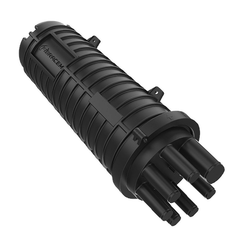 Caixa de Emenda Óptica Jumbo SVT foi desenvolvida para proteger a fusão, distribuição e concentração de fibras ópticas em redes aéreas. A caixa abriga emendas diretas ou derivadas, suportando até 144 fibras acomodadas em seu interior através de suas bandejas plásticas. Possui configuração unidirecional de entrada de cabos, com uma entrada oval para dois cabos com diâmetro de 10 a 25mm e 6 entradas cilíndricas para cabos derivados com diâmetro de 5 a 18mm. As entradas dos cabos são seladas através de tubos termocontráteis (SVT) e a junção da base com a cúpula ocorre por sistema mecânico (abraçadeira de fechamento).